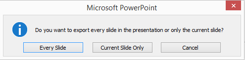 4. The next dialogue will ask if you want to save the current slide or all slides as a picture. Select your choice. If you select every slide, a folder with individual picture files will be created within it.